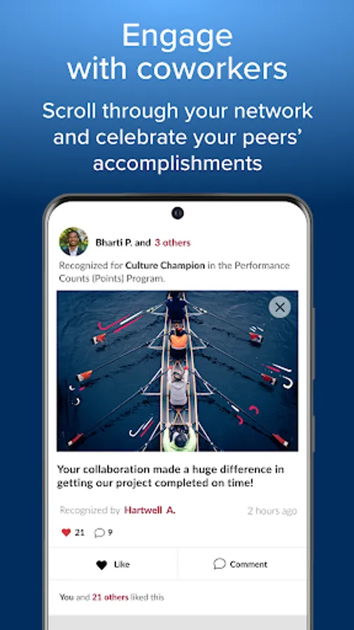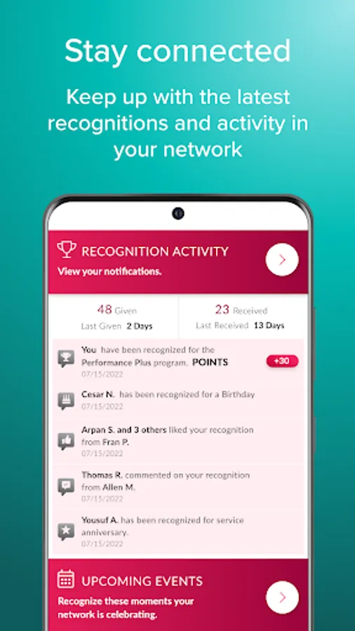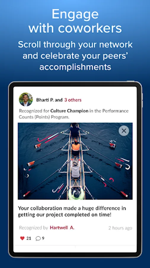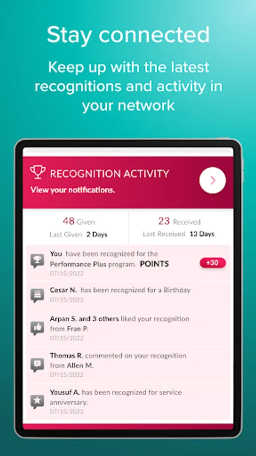 · Celebrate your peers’ accomplishments and give recognition on the go