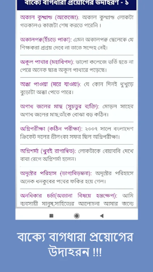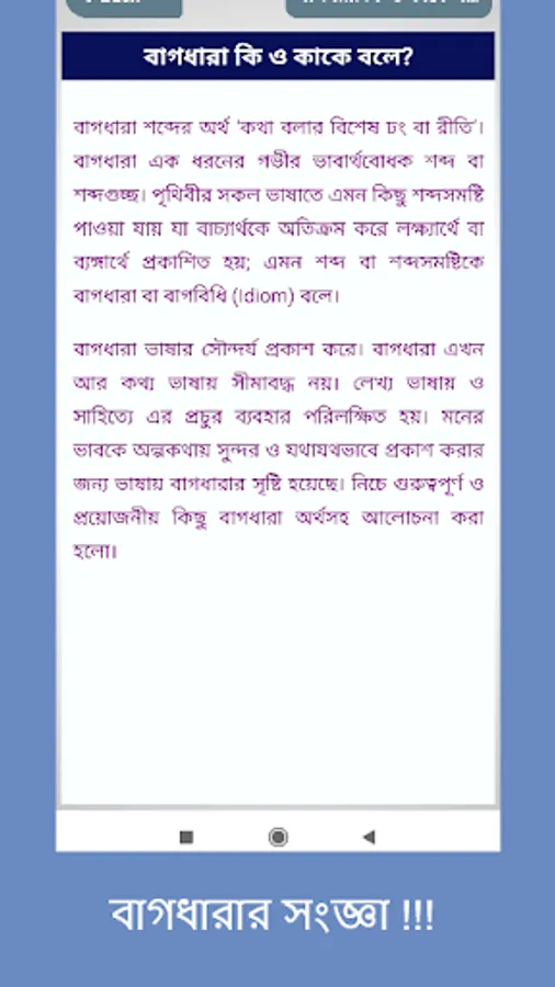 বাগধারা ও বাংলা প্রবাদ প্রবচন সম্পর্কিত বিস্তারিত আলোচনা নিয়ে আমাদের এই Bagdhara app. বাগধারা বাংলা ব্যাকরণ এর একটি বিশেষ অংশ।