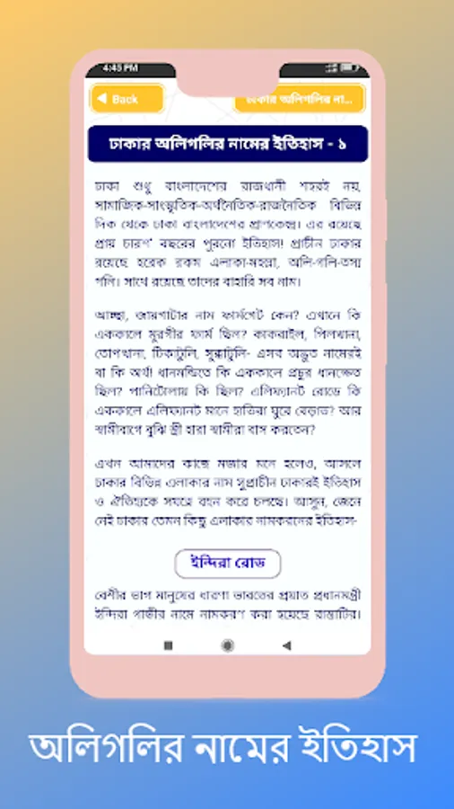 প্রাচীন ঢাকার অলিগলির সাথে জরিয়ে আছে প্রায় চারশত বছরের ইতিহাস। এই অ্যাপটি সম্পূর্ণ পড়ে শেষ করার পর ঢাকার ম্যাপ আপনার মগজে গেথে যাবে। এতে আপনার dhakar oli goli চিনতে কোন সমস্যা হবে না ইনশাআল্লাহ্। আমাদের অ্যাপে পাবেন সমগ্র ঢাকার সকল অলিগলির তালিকা। যেখান থেকে জানতে পারবে কোন গলি বা রাস্তা কোন এলাকাতে। সেই গলির নামকরনের ইতিহাস।