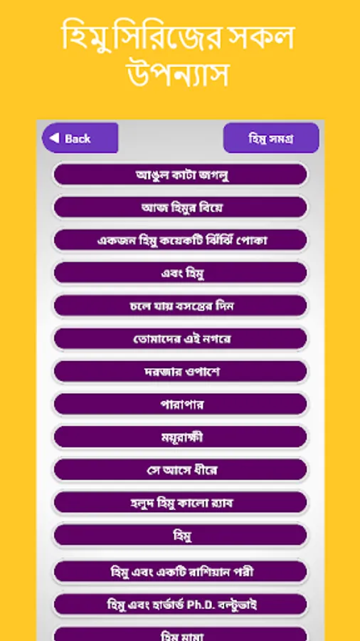 আমাদের এই অ্যাপে পাবেন হিমু সিরিজের সকল উপন্যাস। তাই হিমু সমগ্র পড়তে আমাদের এই অ্যাপটি ব্যাবহার করে দেখুন। আশাকরি আপনাদের সকলের ভালো লাগবে।