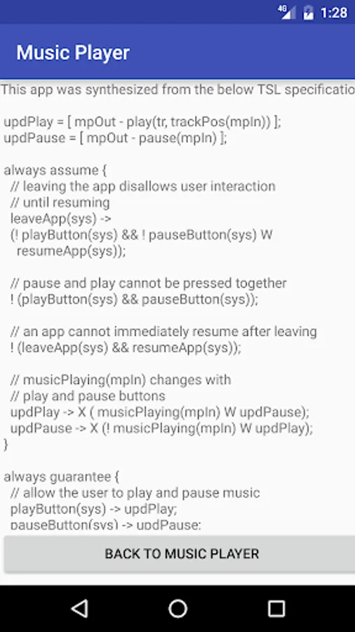 This is a really simple app that was automatically synthesized from a logical specification in TSL (Temporal Stream Logic).