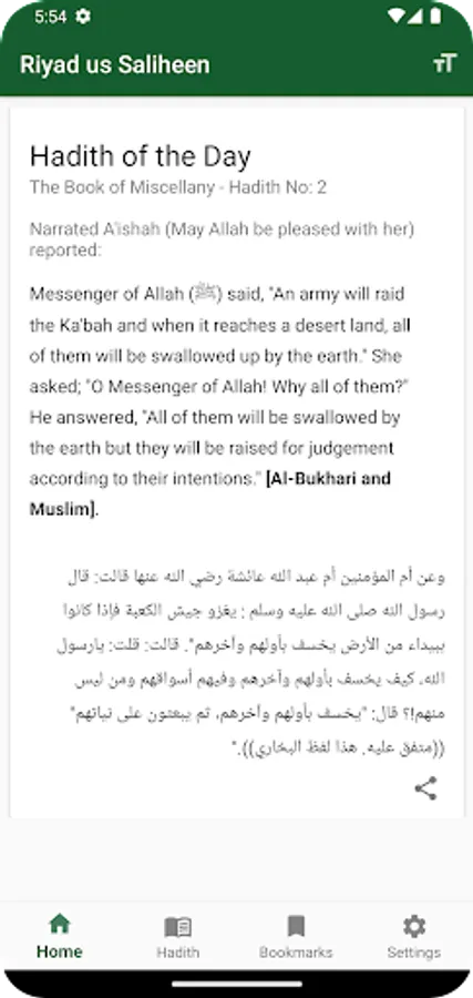 5. Share and Inspire: Share meaningful hadiths with your friends, family, and social networks directly from the app. Spread the profound teachings of the Prophet Muhammad (pbuh) and inspire others on their spiritual journey. Let the wisdom of Riyad as-Salihin reach far and wide.