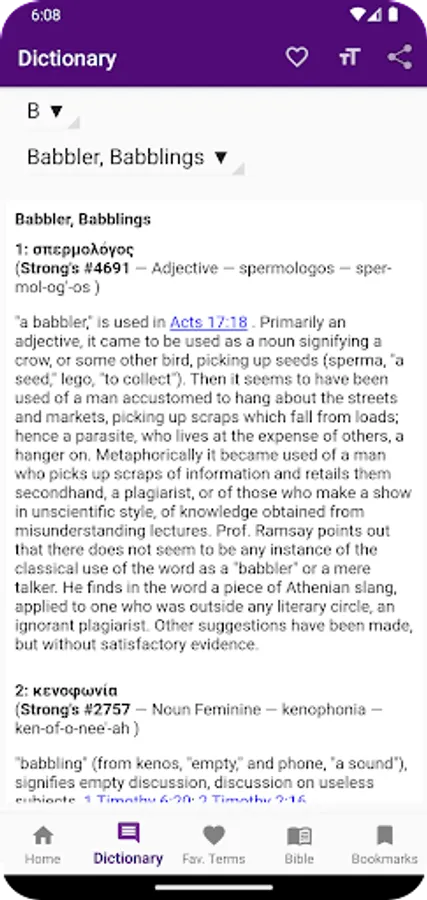 5. Offline Access: Download the entire contents of Vine's Expository Dictionary and the KJV Bible for offline use. Carry this invaluable resource wherever you go, ensuring uninterrupted study and reflection.