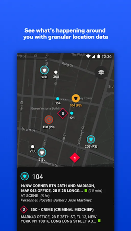 Mark43 OnScene is a native mobile application that provides critical first responder functionality away from a first responder’s MDT. It is intended for first responders who already use the Mark43 First Responder CAD application on their MDTs.