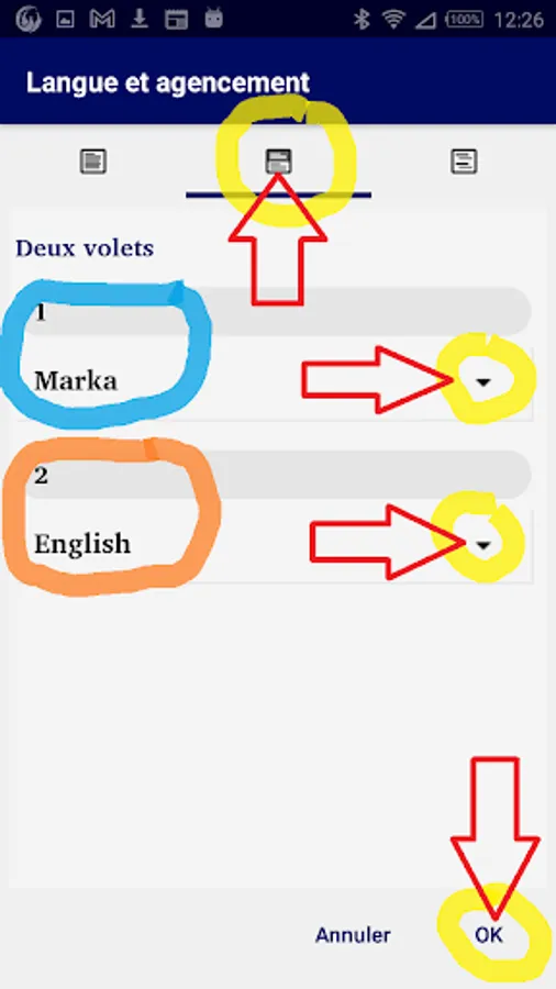 "two shutters" to display the marka at the top and the French or English version at the bottom;