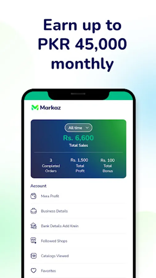 Markaz is a reselling App from Pakistan that lets you sell high-quality products at a wholesale rate or sell to others while working from home and earning money online. Markaz makes sure that we source the best quality products at the lowest wholesale prices, allowing you to shop online at the lowest cost and resell them online, quickly earning up to 45 thousand per month. With Markaz, you can start your online reselling business with zero investment. All you need is a smartphone to get connected with Markaz, set up your reselling business, and earn money online from home.