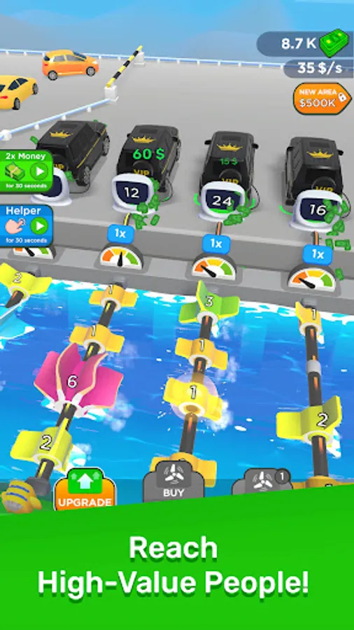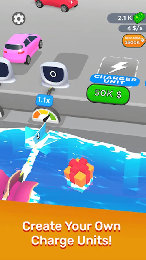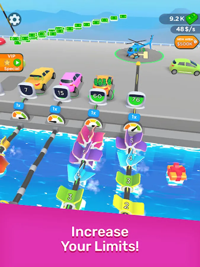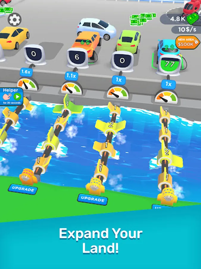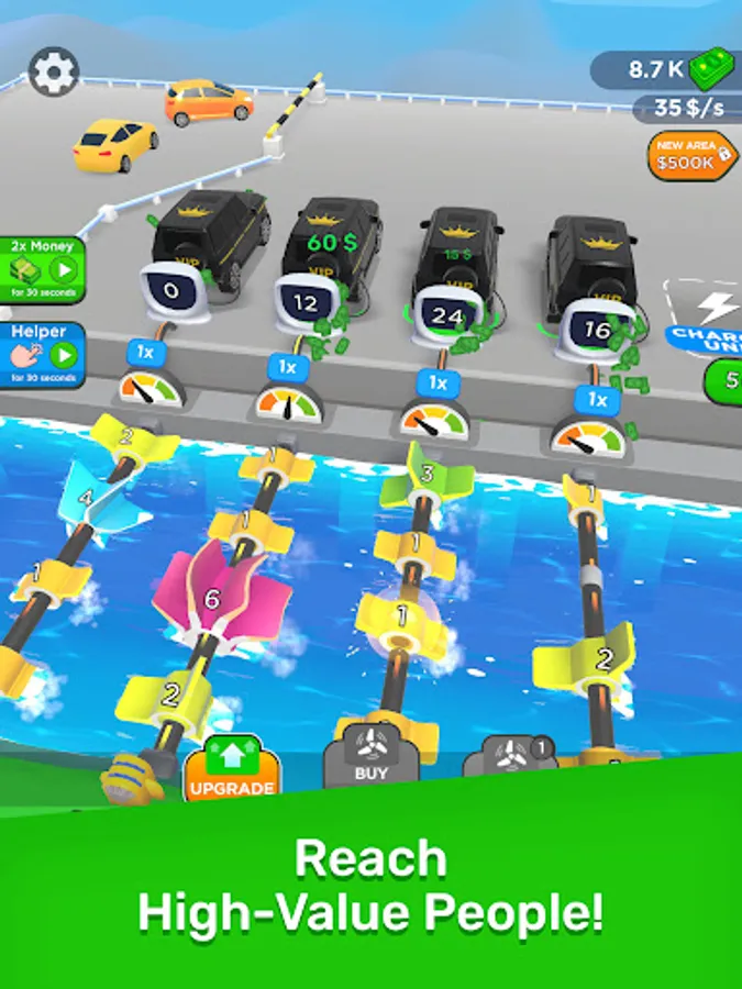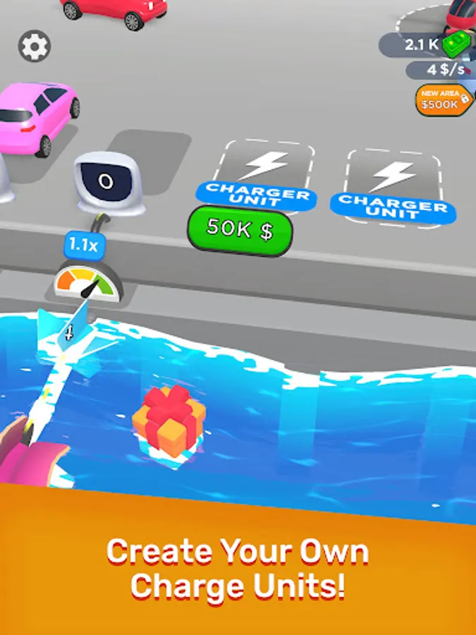 Generate energy by establishing power plants around a river and use it to power the charging stations. Earn money as vehicles charge and use it to purchase new and more powerful reels. As you progress, merge reels to create even more powerful charging stations and expand your network to meet the growing demand for electric vehicle charging.