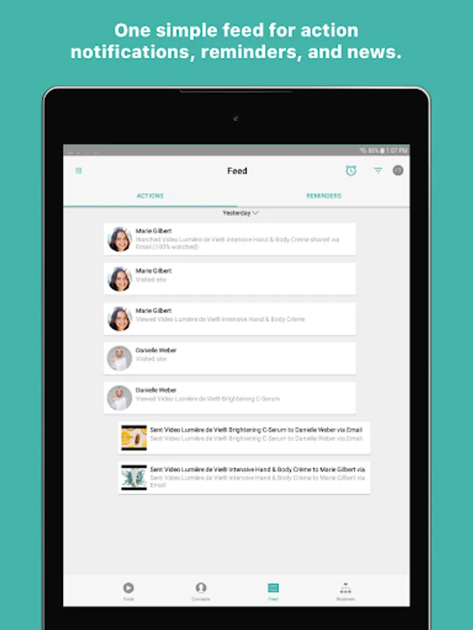 Tools: It has never been easier to share information about your products and opportunity via SMS text, email, or social media. Simply choose tools specifically designed to promote your business and share them with a contact. You'll receive a notification when contacts view a tool so you know exactly when to follow up! You can even add your own tools. Record or upload short videos to share with prospects. You can even add actions to your videos so prospects can interact directly in the video. These smarter interactive tools are called a Brightool and they provide more data for follow up with ActionAlert notifications in the Feed. No data connection? No problem! Simply download tools such as videos in the app beforehand for offline playback
