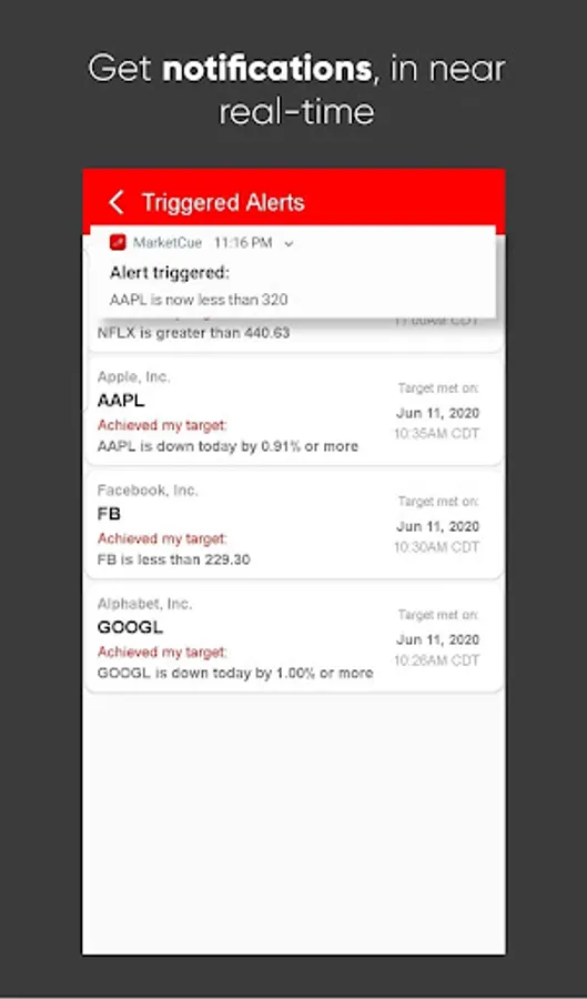 Track stock quotes & live stock prices with MarketCue - #1 custom alerts & live stock market prices app.