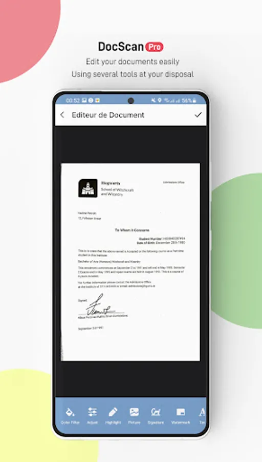 ScanDoc Pro is a Smart Scanner on your smartphone. It turns your phone into a portable scanner, PDF converter, QR reader and generator, text extraction OCR tool and a platform for sharing all your documents.