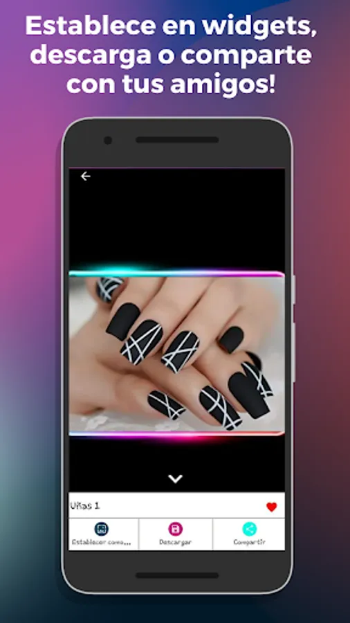This application is going to allow the use of excellent images of nail designs for any occasion that you need. You can set them as widgets, share them through a social network, save it in your gallery or any other use of your choice on your mobile device