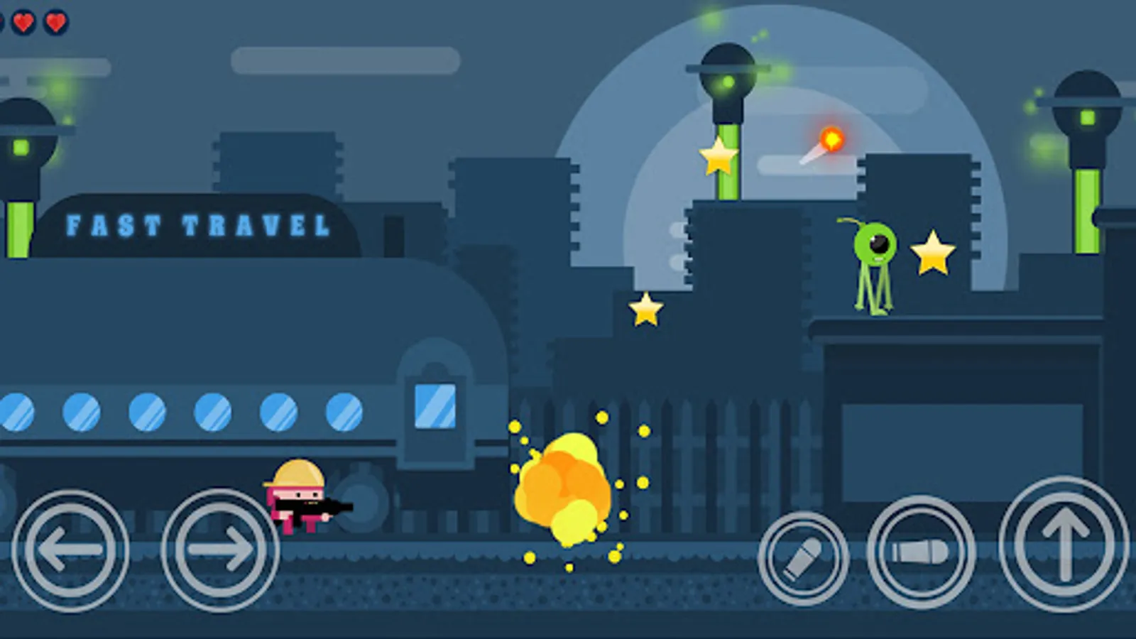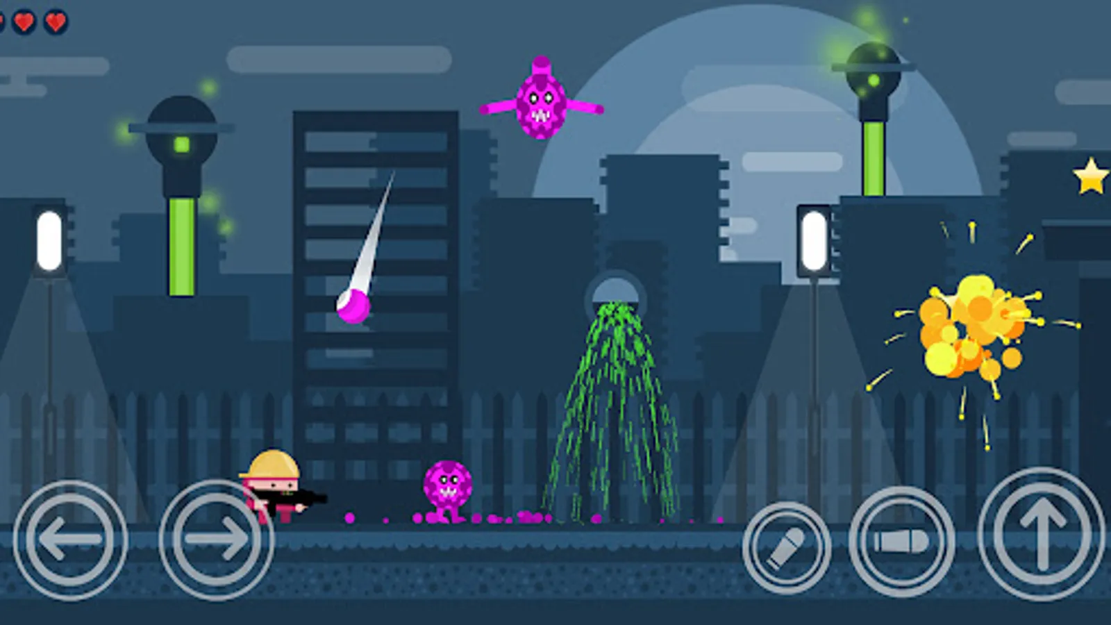 Killer Boy is action shooter game where you need to protect yourself from aliens by destroying them! There's a lot of type of aliens and also bosses to destroy! Collect stars to get more points and also collect upgrades for your weapon.