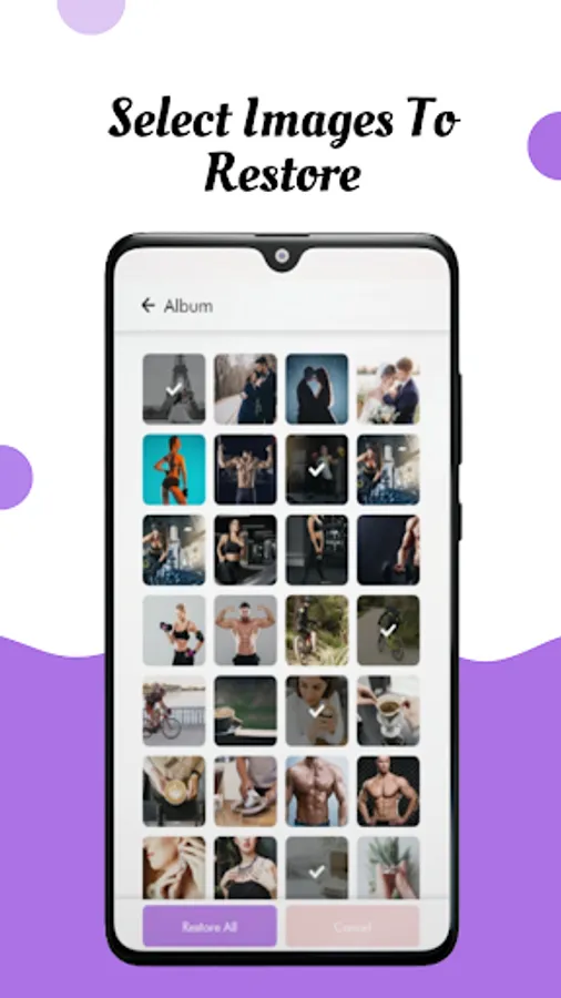 Deleted Photos & Video Recovery App May Show Some Pictures Even If They Are Not Deleted Yet. But Keep Looking And You Will Find Deleted Photos You Are Looking For. Also, It Scans All Available Images From Your Phone Which May Contain Status Images Or Other Social Media Downloaded Images.