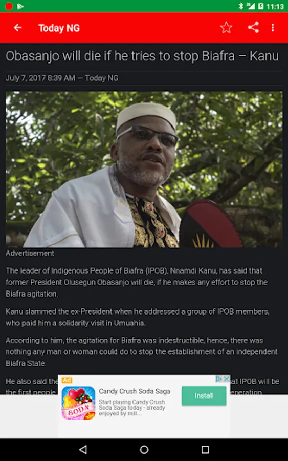 Biafra world news apps is the ultimate all-inclusive biafra news today live! from Biafra land that you deserve for breaking news update from our homeland Biafraland from all legit news sources. Follow the latest Biafra news update online as they unfold. Bringing you the best Biafran steaming videos,live broadcast from igboonline news today, streaming video from mazi Nnamdi kalu,