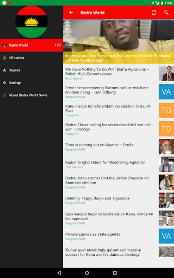 Sources of our latest news in our radiobiafra app includes,channels 24 news tv 24,Linda Ikeji Blog,Aljazeera news,Abs news,Igbo Movies,Nairaland,,Cameroun tv,abs news apps,Independent People of Biafra,igboonline.com news,Igbo news,Biafra tv,radio Biafranews,cnn news,Bbc news tv,Nigeria television authority NTA naij.com,bunce ne