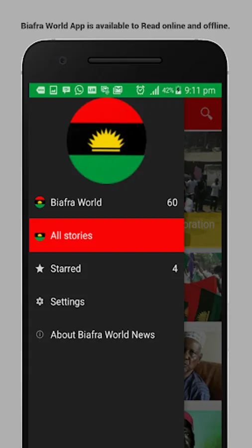 Download our Biafra news app and get the current and exact current news on the freedom fighting nation of Biafra, Biafra Agitation plus political standouts on the biafran war, Biafran saga, Dr chukwuemeka Odumegwu Ojukwu, Ralph Uwazuruike ,Biafran leader nnamdi kalu, Biafran people, Biafran mandate, Radio Stream radio, worldwide Massob news, Massob members, Ibo crafts, Biafran Jews, Bim Biafra Independent Movement, BZM Biafra Zionist Movement, Ohaneze forum, Bafra,Ohaneze Ndigbo, and the Rabbis of igboland, it also will show you a deep insight on states of Biafra, maps, Biafran history, united states of Biafra republic, Biafran currencies, Biafran technologies and crafts., Biafran arts and fashion,biafra pictures,and Biafran photos for rallies ,concerts ,prayers,etc it also features prophetic prophesies about the coming of Biafra