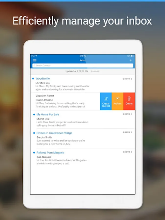 Streamline your productivity with the Market Leader app—an intuitive mobile experience to manage your sphere while on the go. Whether you’re responding to a new lead, creating a reminder, or viewing recently active consumers on your website, all activity is synched with your Market Leader CRM.