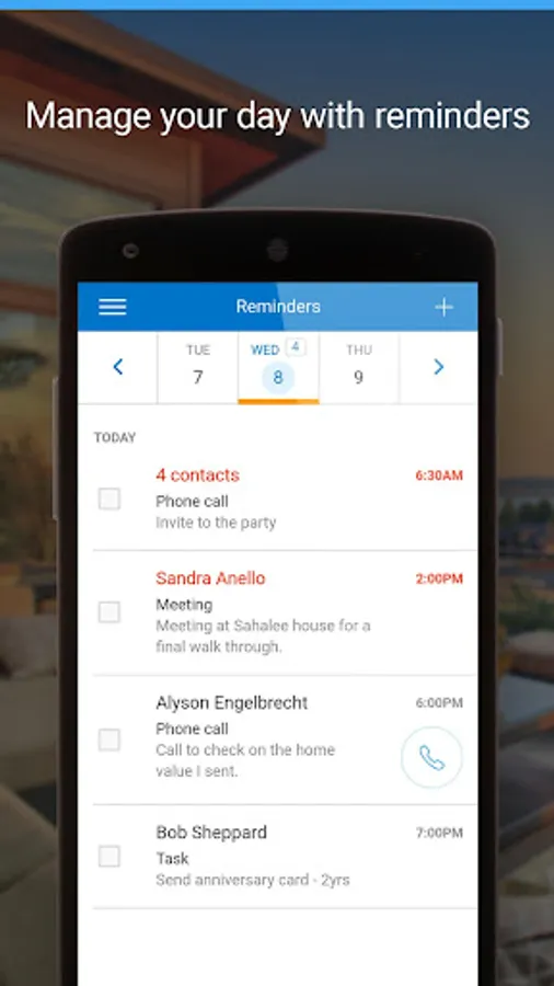 Reminders help you manage your day. Easily navigate to see which reminders are due today, tomorrow, the past and the future.