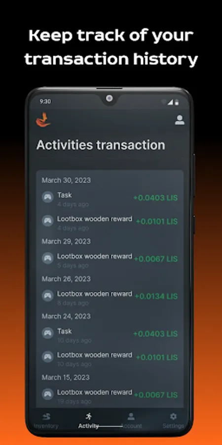 - Inventory: Access an overview of crypto LIS and tokens held, including their values and transaction history.
