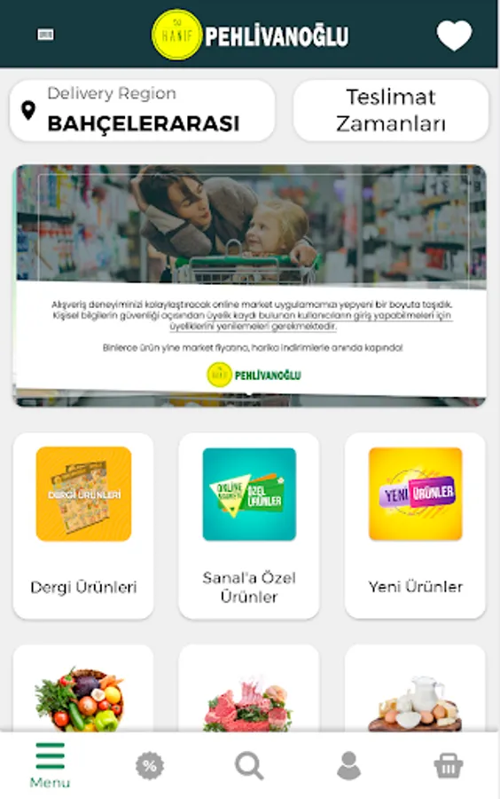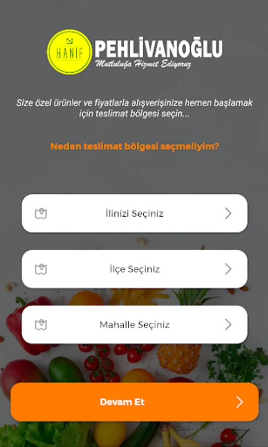 Hanif Pehlivanoğlu application is very easy to use. By creating your user registration, add the products to your cart and choose the address you want delivery to, and your grocery shopping will be delivered to your door. That is all.