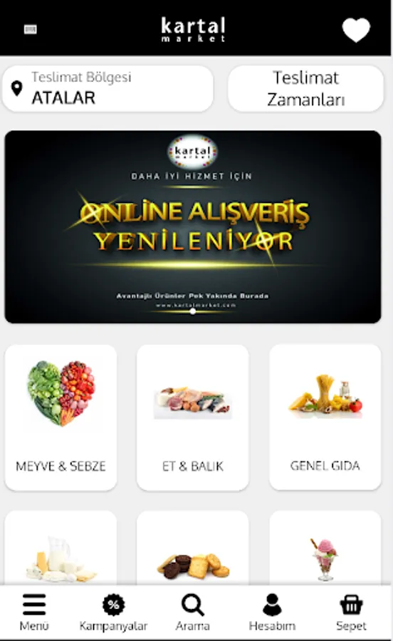 You can order all the products you can find in Kartal Market stores with Kartal Online and you can easily get your order delivered from your door at the day and time you predetermine. You can add the best quality products to your basket by taking advantage of the discounts and campaigns specially prepared for you and you can continue your shopping whenever you want. Enjoy quality and safe shopping with Kartal Online branch!