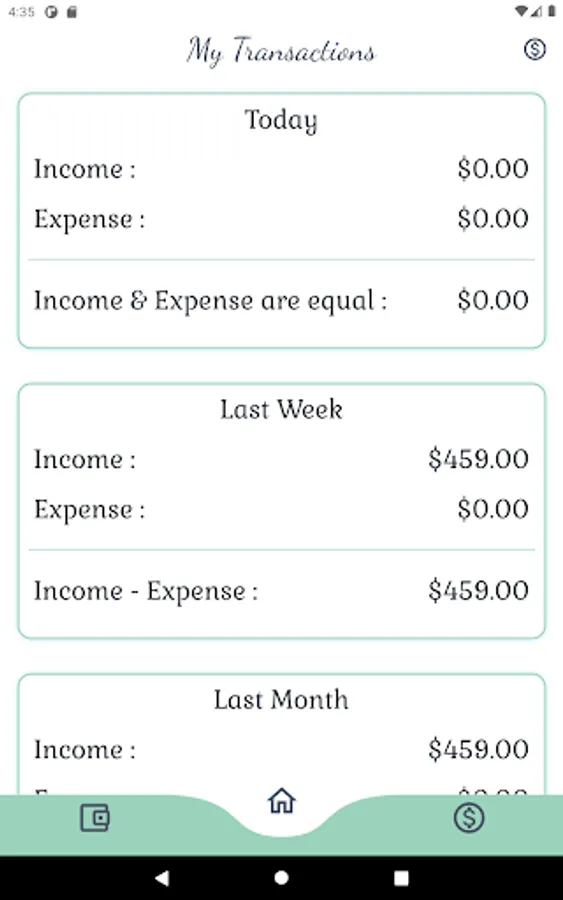 The app automatically calculate your daily, weekly , monthly and yearly Income and Expense . And also show you the difference of your income and expense