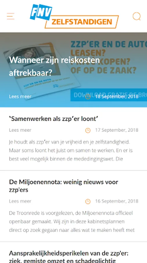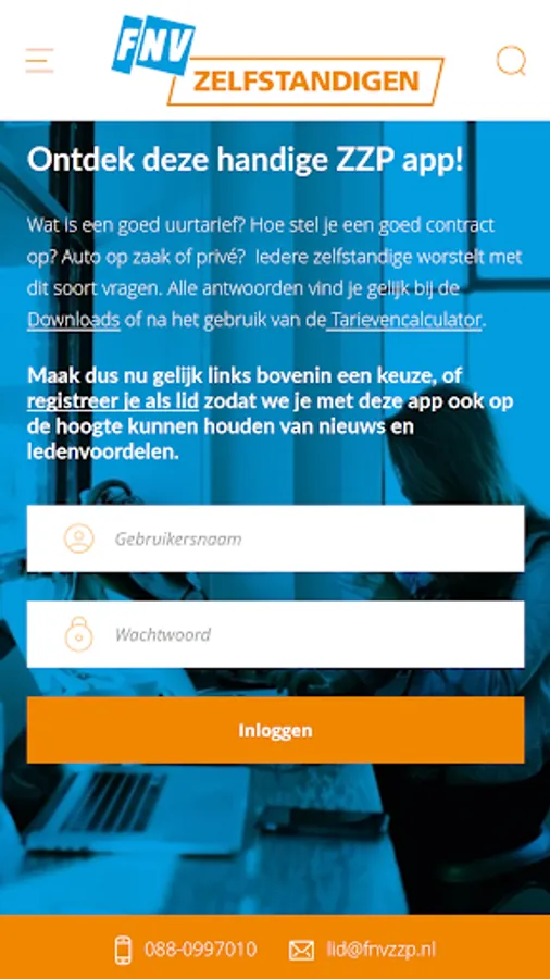 What is a good hourly rate? How do you prepare a good contract? Do you put your car on the shop or private? What do you need at least per hour to build up a decent pension, to take out disability insurance and to have a good life? With the rate calculator you can calculate it in a jiffy. In addition, this app offers you interesting brochures on all aspects of independent entrepreneurship. And are you a member of FNV Zelfstandigen? With this app we can also keep you informed of news and member benefits.