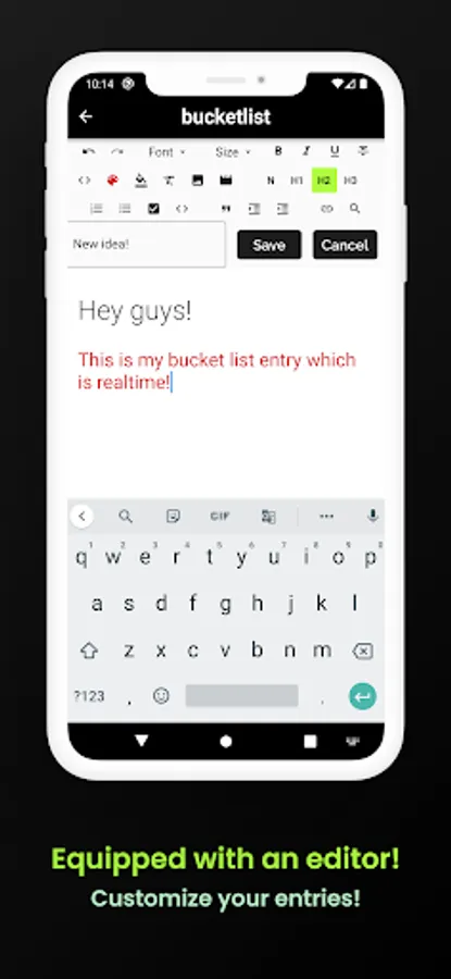 Bucketlist will enable you to share different buckets with your friends! You can add different entries in the bucket using an easy-to-use editor!