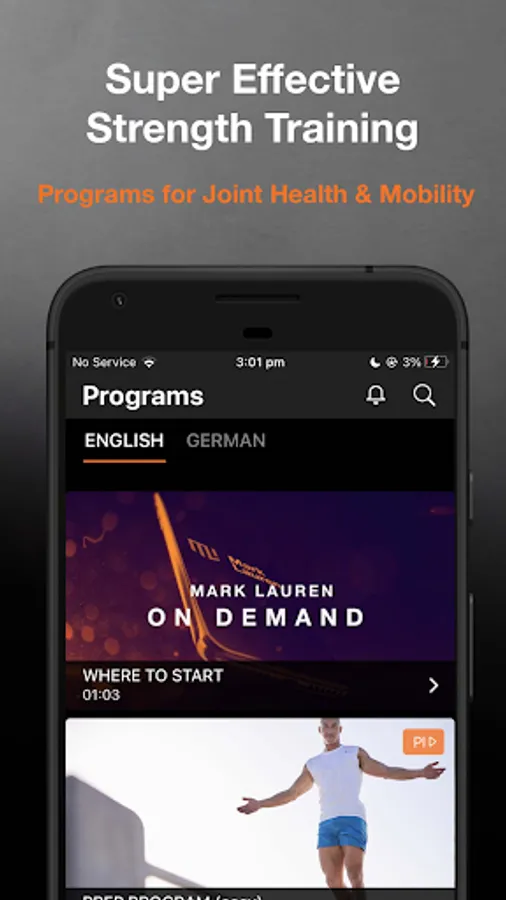 To access all features and content you can subscribe to Mark Lauren On Demand: Fitness on a monthly or yearly basis with an auto-renewing subscription right inside the app.* Pricing can vary by region and will be confirmed before purchase in the app. In app subscriptions will automatically renew at the end of their cycle.