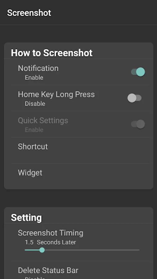 You can take a screenshot by displaying the screen you want to take a screenshot of after pressing the shortcut or widget from the home screen.