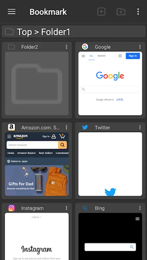 It is an application that displays a list of bookmarks in thumbnails and text.