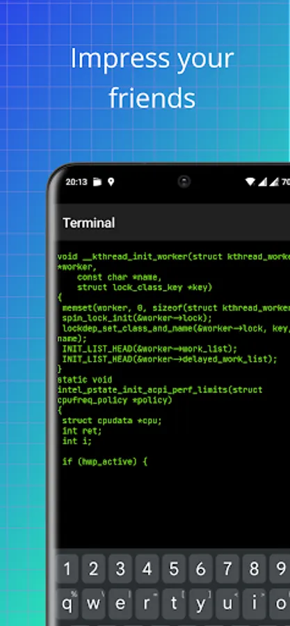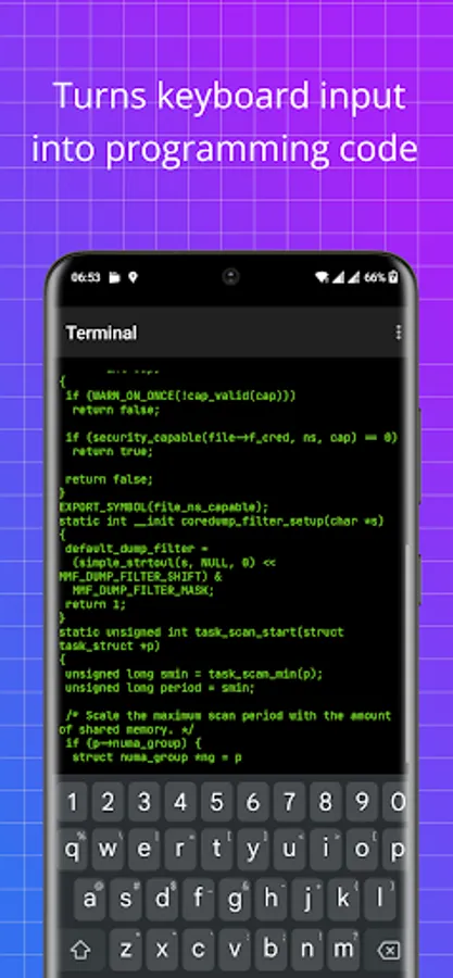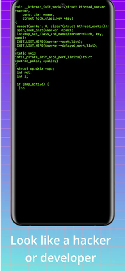 Every keystroke becomes a valid C programming language displayed on your screen. Watch the code flow dynamically in the terminal as you type.