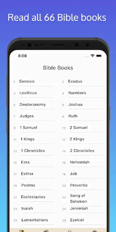 Easy to use offline Bible study app. Quickly access all bible books, with super easy navigation that allows quick location of desired verses with a single tap.
