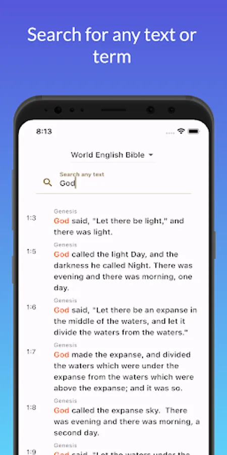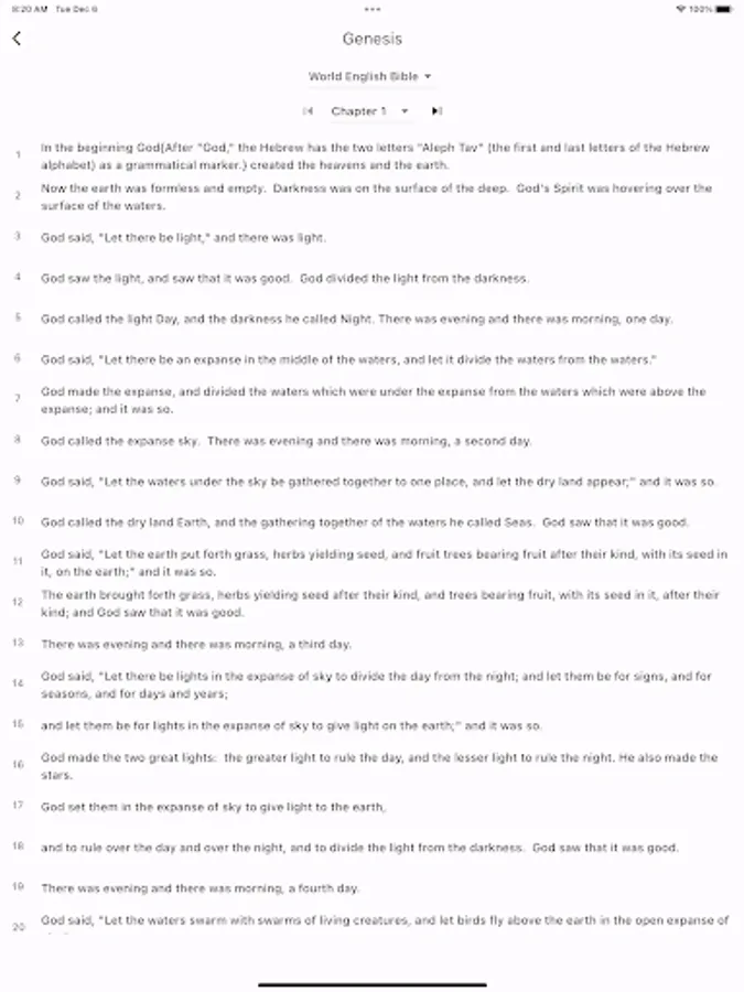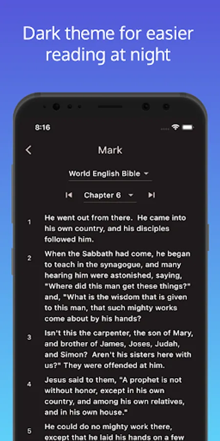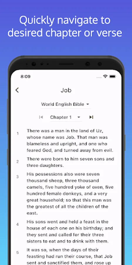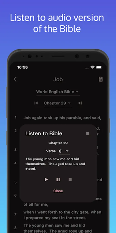 Don't have time for reading? Then listen to the audio version of the Bible. Just pick a chapter and verse and tap a button. The app is transformed to an Audio Bible Book.