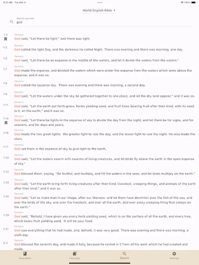Polyglot Bible App is a lightweight, offline e-bible for your daily study and reference. You can bookmark and save to favorites verses that you like the most. Looking for a specific text or a term? This e-bible comes with the offline full text search feature, that allows blazing fast lookup of any text in any of the provided Bible versions.