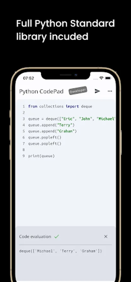 You can run, execute, and evaluate Python code, scripts, and programs from this app.