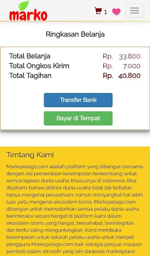 Marko Daily Need / Marko / Markopelago.com adalah platform yang dibangun bersama dengan visi pemerataan kesempatan berkembang untuk semua lapisan dunia usaha; khususnya di Indonesia. Bisa dipahami bahwa definisi dunia usaha tidak tak terbatas hanya mengenai perusahaan; namun menyangkut hal lebih luas yaitu mengenai ekosistem bisnis. Markopelago.com dibangun untuk memudahkan semua pelaku dunia usaha berinteraksi secara hangat di platform kami dalam ekosistem bisnis yang hangat, bersahabat, berintegritas dan tentu saling menguntungkan. Kami membuka kesempatan untuk seluruh pelaku usaha untuk menjadi pengguna Markopelago.com baik sebagai penjual maupun pembeli dalam atmosfir yang lain daripada marketplace lainnya. Tidak ada yang mengenal Indonesia lebih baik dari kita.