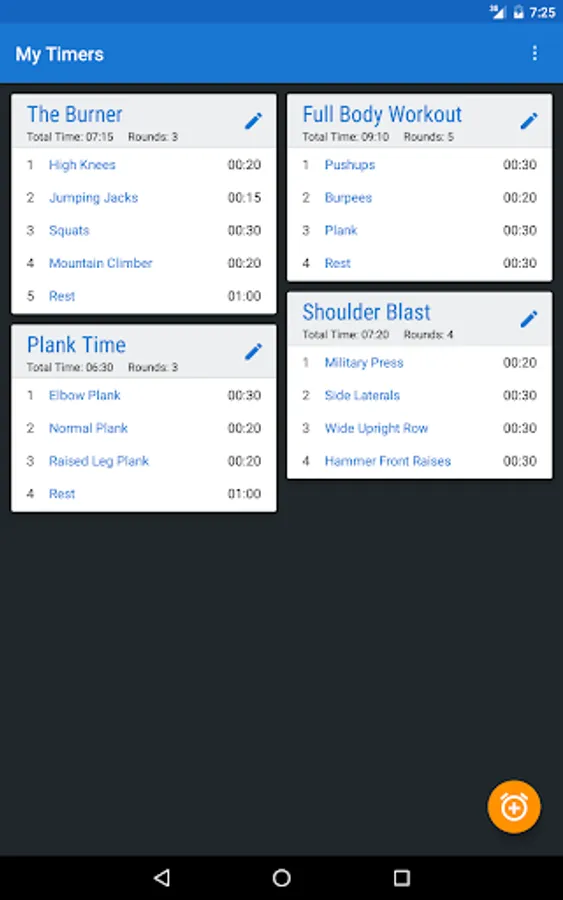 Chrono List is simple and beautiful manager for all your different interval timers. It is the perfect app for Circuit training, High Intensity Interval Training (HIIT), Tabata, Boxing and other workouts. It can also be used as a meditation or yoga timer, studying and work/rest timer.