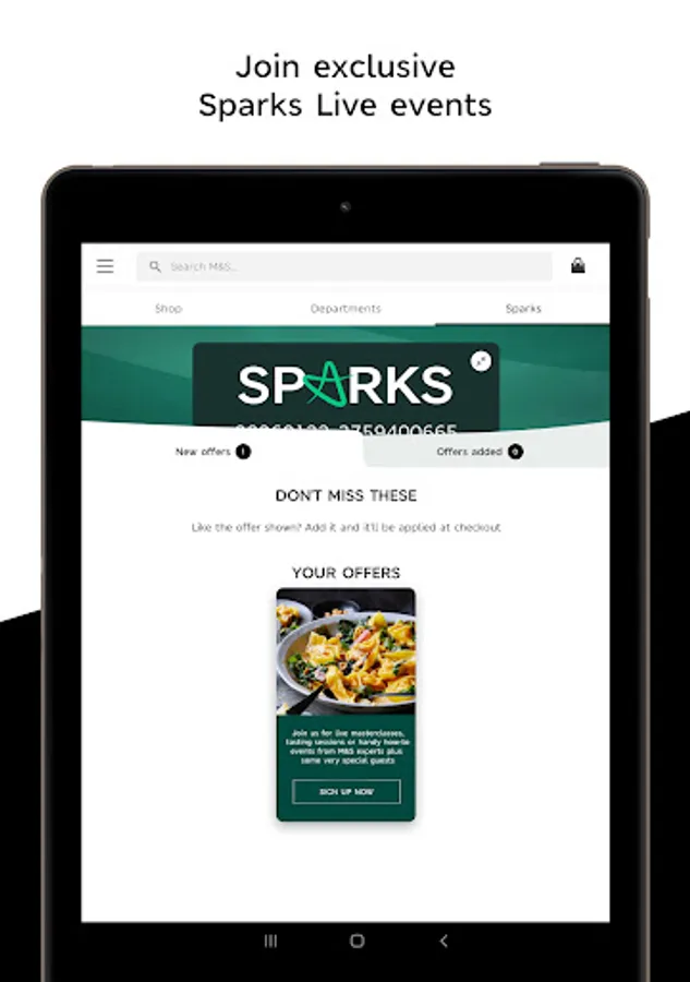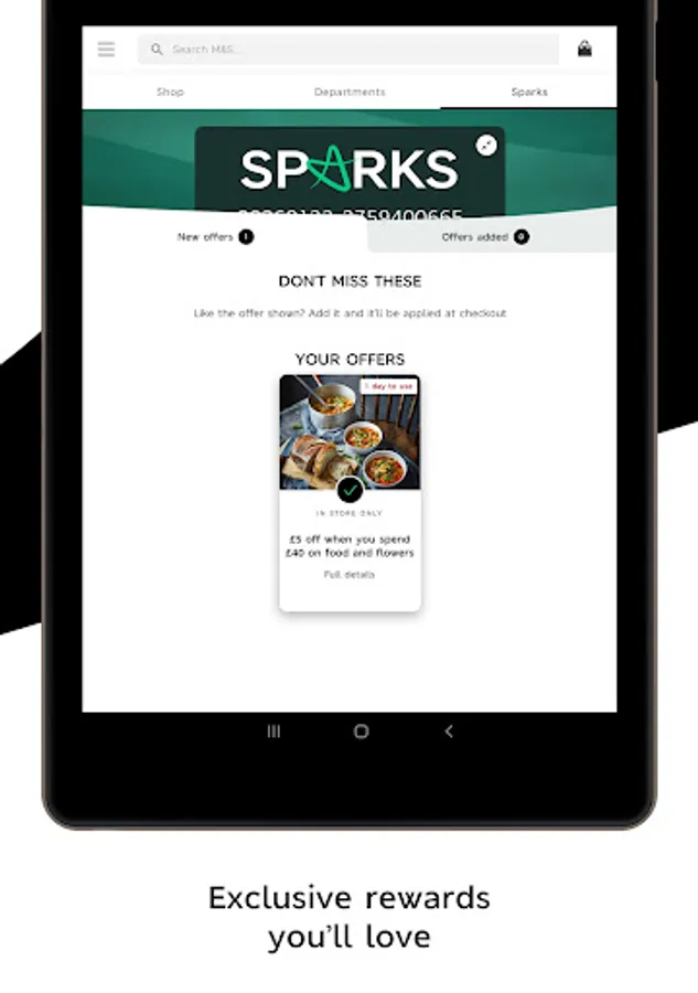 Make shopping for your favourite M&S products easier than ever, whether you’re at home, on the go or in store with the M&S app. Access your Sparks account where you’ll find our incredible rewards scheme, exclusive offers, Scan & Shop and much, much more.