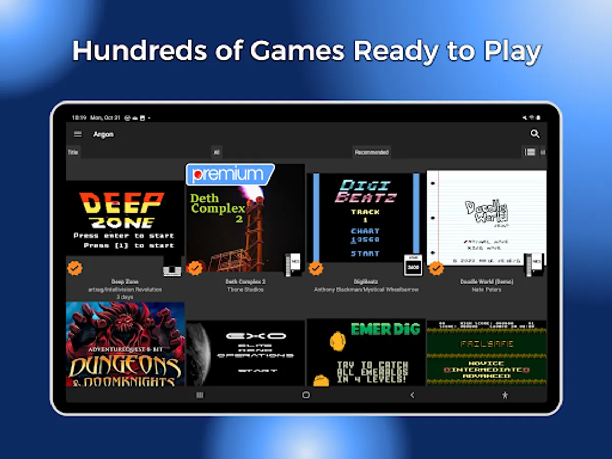 Argon lets you play games from your own collection as well as from our ever-expanding library of hundreds of classic games and homebrew hits!