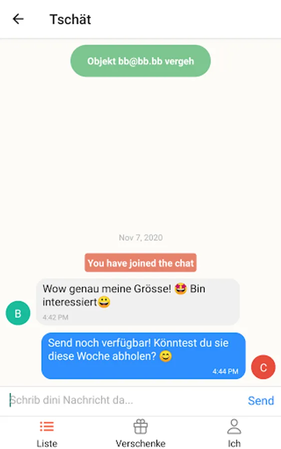 The easiest way to give away things that you no longer need. Simply upload a picture, add a description and those interested will contact you.
