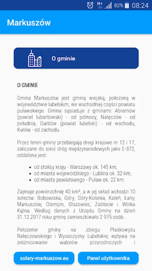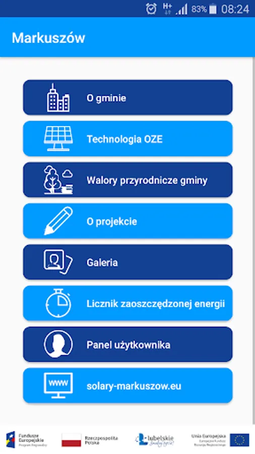 In addition, the application presents numerical data regarding energy savings, information about the RES project and technologies as well as the natural values of the municipality that the project protects. In the application there is a photo gallery from the area of Markuszów commune.