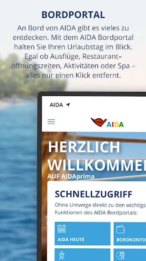 - Discover AIDA at your fingertips: Learn about the restaurants and bars, the cabins and public areas, as well as excursions, sports and spa.
