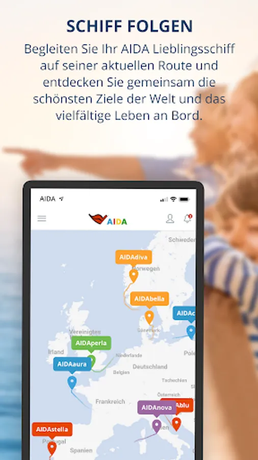 - Ship positions on the map: See where the cruise ships of the AIDA family are currently located.