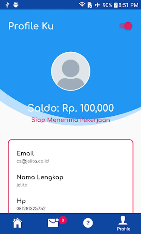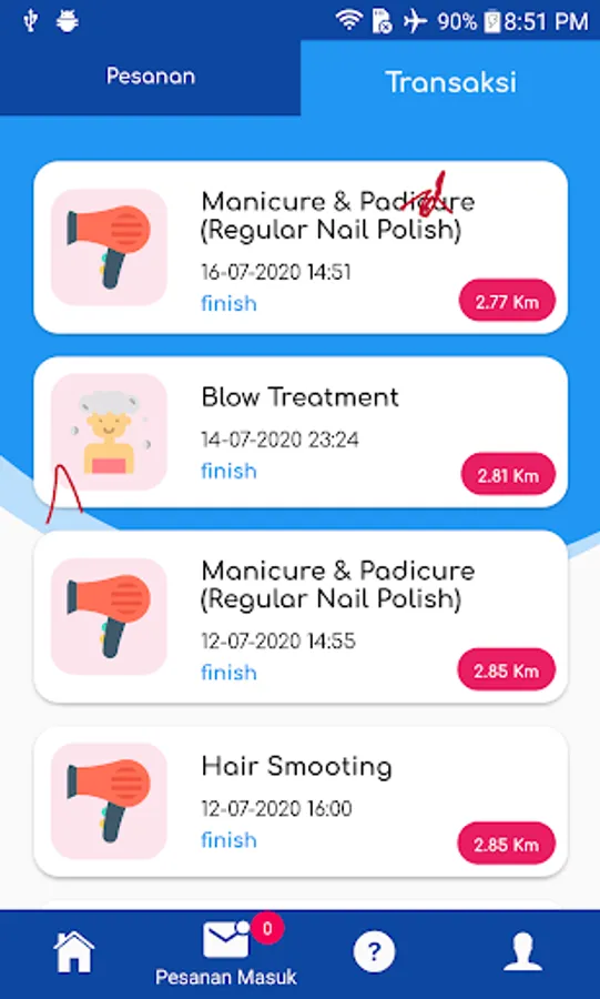 The Jelita Salon & Spa Home Service application is specific to partners as recipients of orders and directly to the customer's home