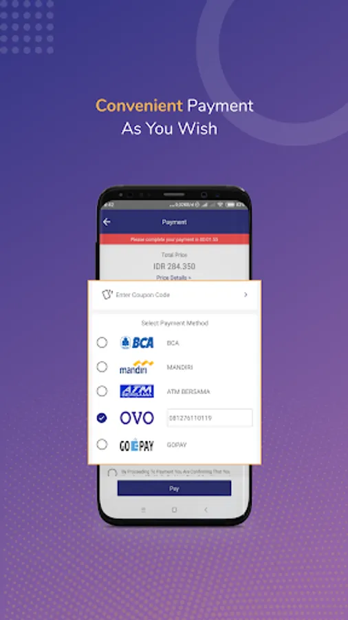 Feel free to pay via your favorite payment methods. There are various payment options available, such as Bank Transfers (Virtual Account), Go-Pay, OVO, and Credit Card (soon).