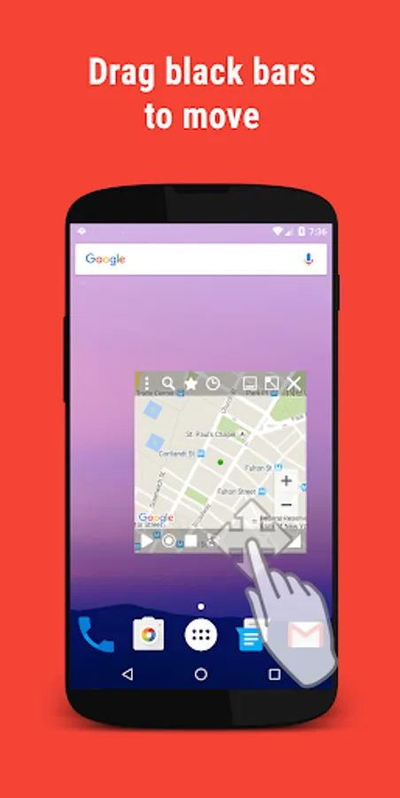 5. Resize the window or minimize it so you can view your app, drag the black bars to move the window.
