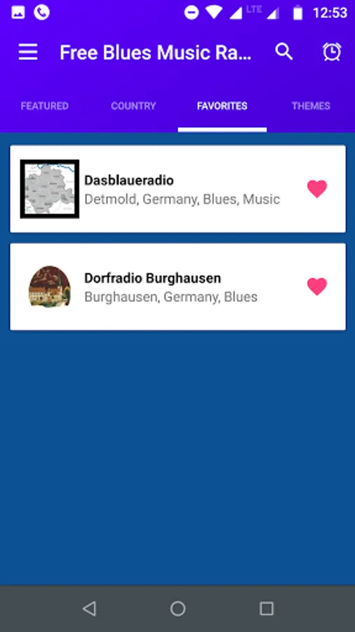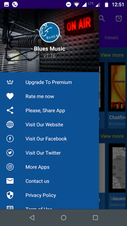 Among the music stations Blues are in this application are the most heard around the world and many more