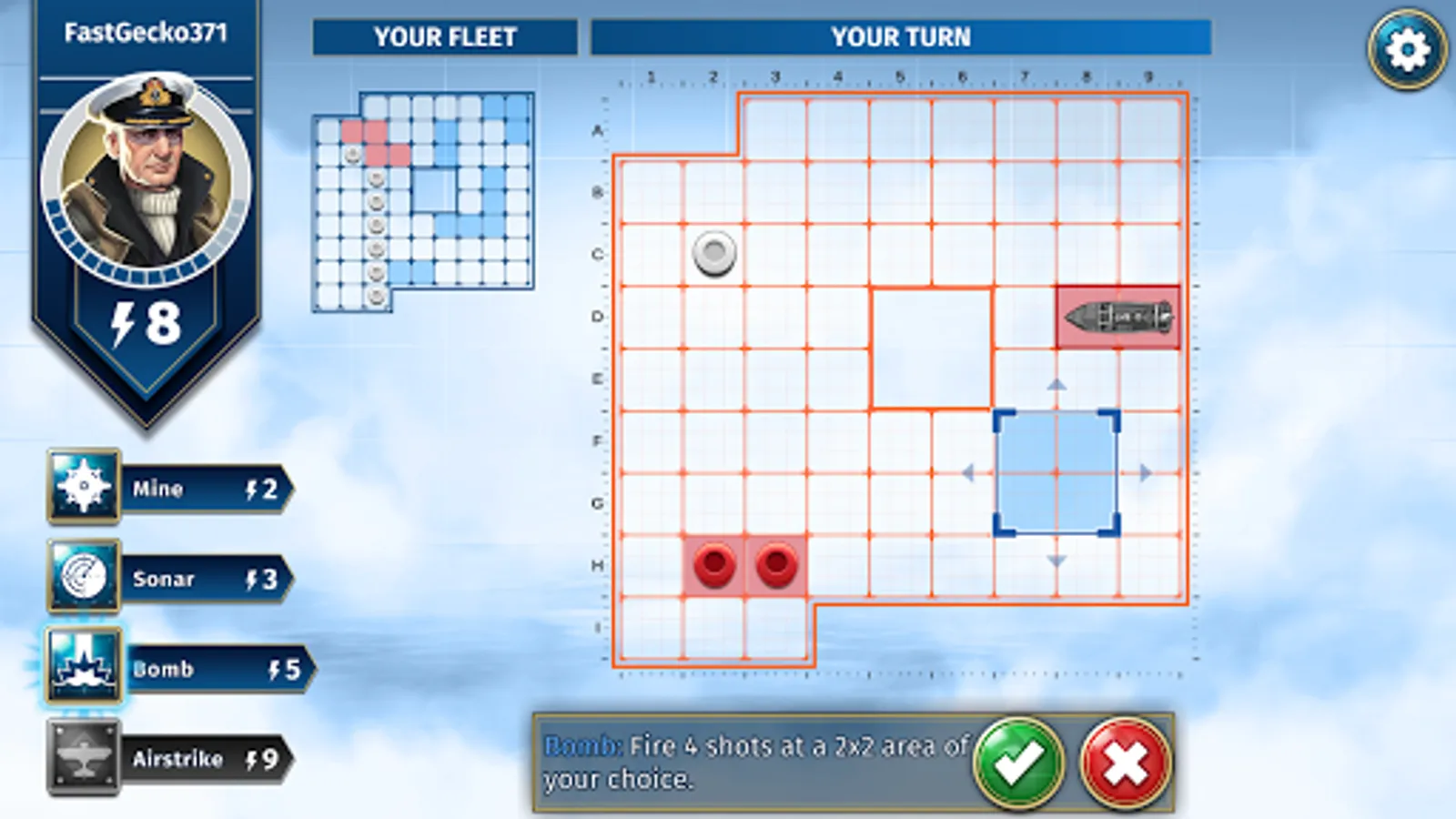 - Hide your ships on the grid in arenas inspired by historical naval battles.