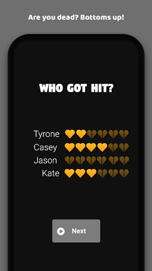 You land in hostile surroundings. Your objective is to be the last person standing. Each player has 10 lives. Watch out though — if you die, it’s bottoms up.